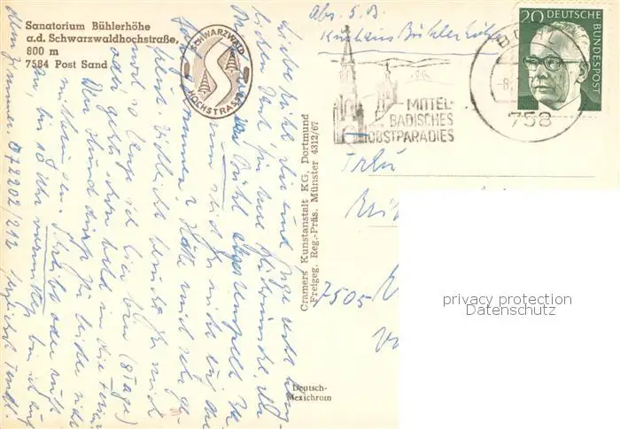 Sand_Buehl Sanatorium Buehlerhoehe a. d. Schwarzwaldhochstrasse Sand_Buehl postalisch gelaufen 1971 Erhaltung siehe scans [LiesaD40] LiesID40