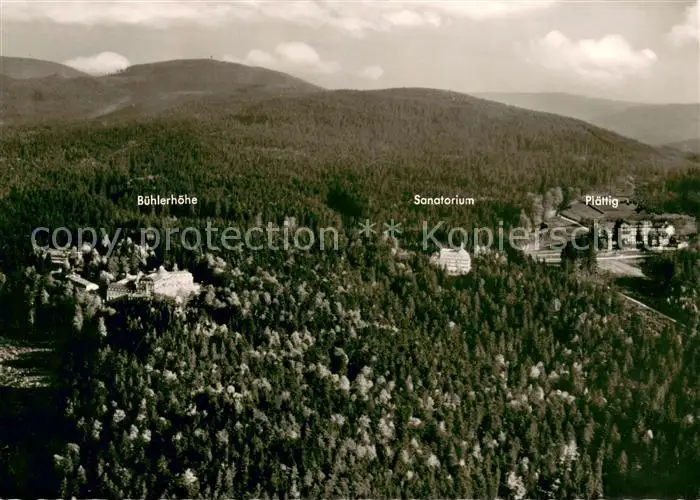 AK / Ansichtskarte Sand_Buehl Schwarzwaldhotel Kurhaus Plaettig Sanatorium Buehlerhoehe Fliegeraufnahme Sand_Buehl