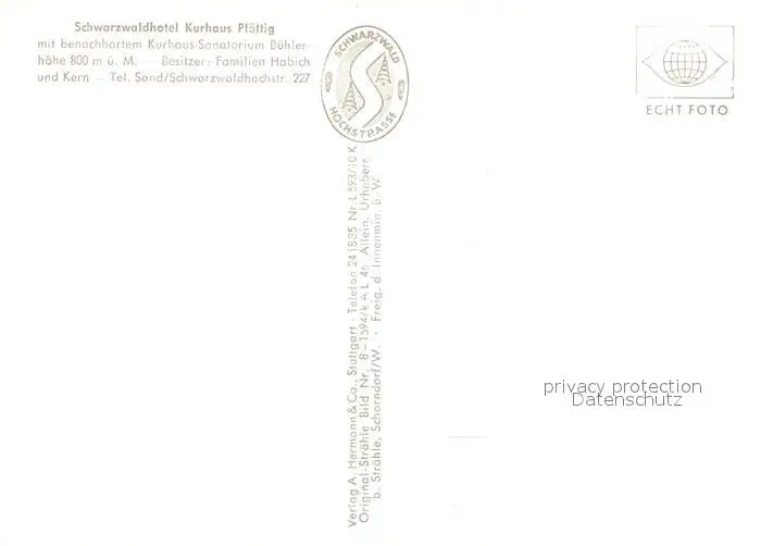 Sand_Buehl Schwarzwaldhotel Kurhaus Plaettig Sanatorium Buehlerhoehe Fliegeraufnahme Sand_Buehl postalisch nicht gelaufen nach 1965 Erhaltung siehe scans [WerneD78] WernPID7