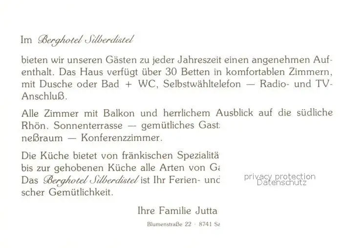 Sandberg_Unterfranken Berghotel Silberdistel Sandberg Unterfranken postalisch nicht gelaufen nach 1965 Werbekarte (keine Postkarte) Erhaltung siehe scans [FriedD77] Werbekarte (keine Postkarte) Frierer