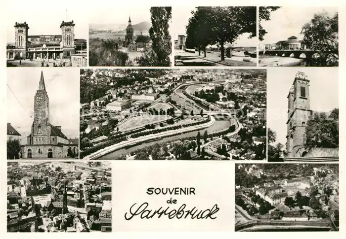 Sarrebruck Kategorie Alte Ansichtskarten Postkarten bx49543 Sarrebruck Stadtpanorama Kirche Fliegeraufnahme Sarrebruck postalisch nicht gelaufen 1954 Erhaltung siehe scans [FriedD77]