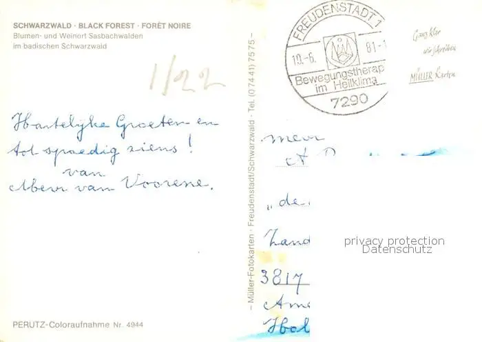 Sasbachwalden Blumen- und Weinort Sasbachwalden postalisch gelaufen 1981 Erhaltung siehe scans [LiesaD40] LiesID40