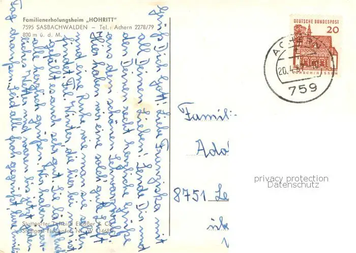 Sasbachwalden Familienerholungsheim Hohritt im Schwarzwald Sasbachwalden postalisch gelaufen 1967 Fliegeraufnahme Erhaltung siehe scans [FriedD77] Fliegeraufnahme Frierer