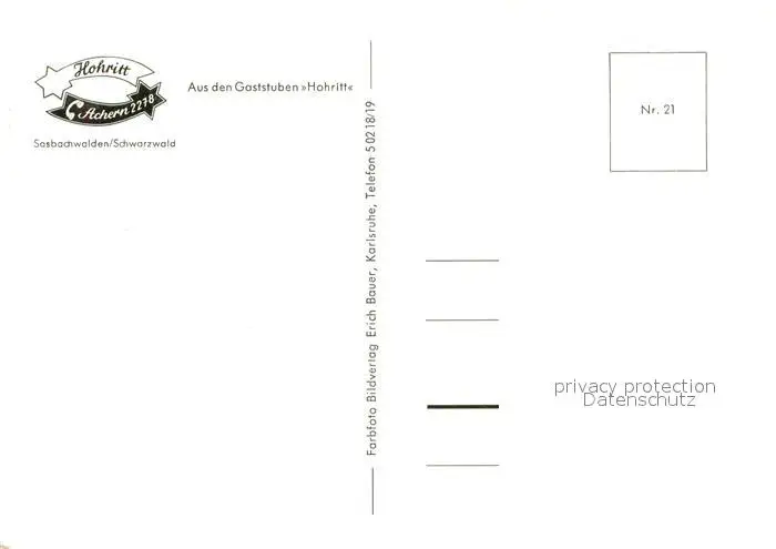 Sasbachwalden Gaststube Hohritt Sasbachwalden postalisch nicht gelaufen nach 1965 Erhaltung siehe scans [FriedD77] Frierer