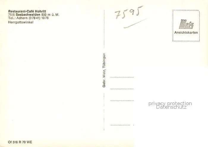 Sasbachwalden Restaurant Cafe Hohritt Sasbachwalden postalisch nicht gelaufen nach 1965 Erhaltung siehe scans [KathaD81] Kathoren