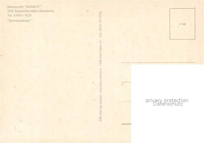Sasbachwalden Restaurant Hohritt Brunnenstube Sasbachwalden postalisch nicht gelaufen nach 1965 Erhaltung siehe scans [FriedD77] Frierer