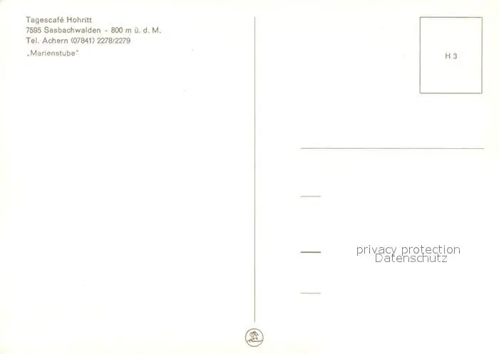 Sasbachwalden Tagescafe Hohritt Sasbachwalden postalisch nicht gelaufen nach 1965 Erhaltung siehe scans [WerneD78] WernPID7