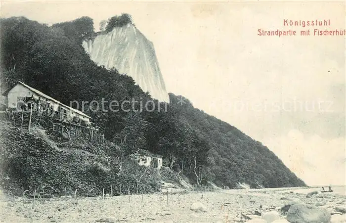 Sassnitz_Ostseebad_Ruegen Koenigsstuhl Kreidefelsen Strand Fischerhuette Sassnitz_Ostseebad_Ruegen postalisch gelaufen 1907 Erhaltung siehe scans [FriedD77] Frierer