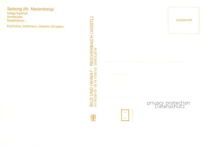 Satzung Uhligs Gasthof Dorfstrasse Basaltfaecher Natur Felsen Satzung postalisch nicht gelaufen 1989 Erhaltung siehe scans [FriedD77] Frierer
