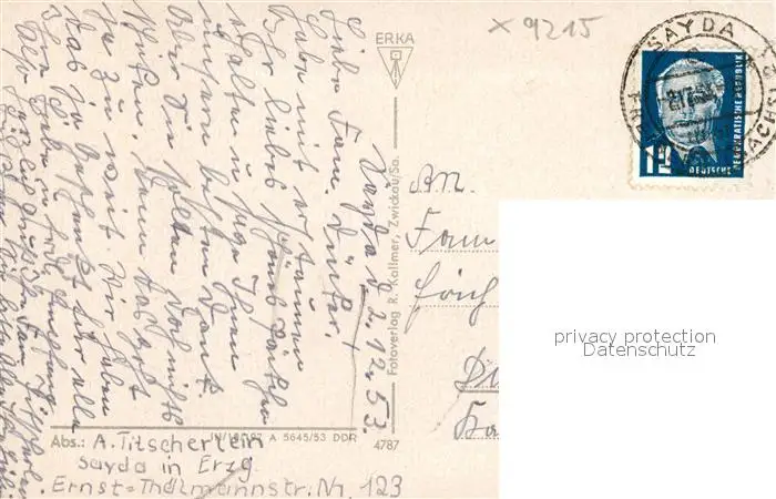 Sayda Hauptstrasse Innenstadt Sayda postalisch gelaufen 1953 Erhaltung siehe scans [FriedD77] Frierer