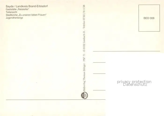 Sayda Ratskelle Kirche Jugendherberge Sayda postalisch nicht gelaufen nach 1965 Erhaltung siehe scans [LiesaD40] LiesID40