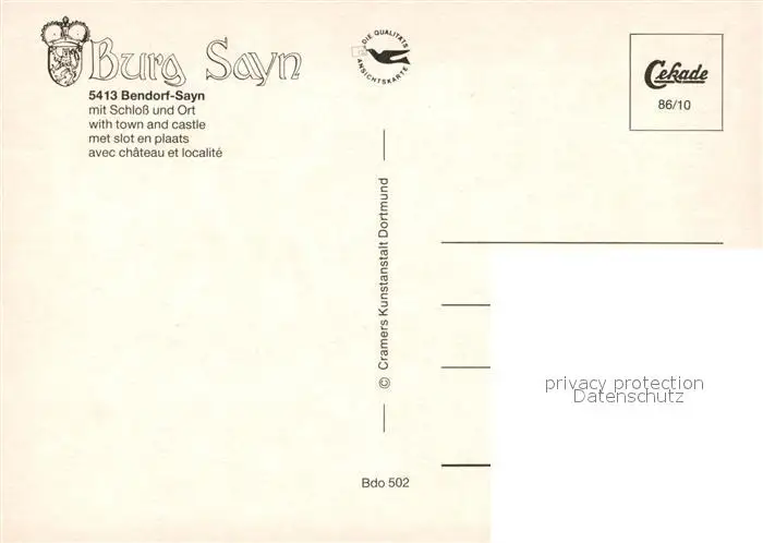 Sayn_Bendorf Schloss Sayn Bendorf postalisch nicht gelaufen nach 1965 Erhaltung siehe scans [NatalD47] NataID47