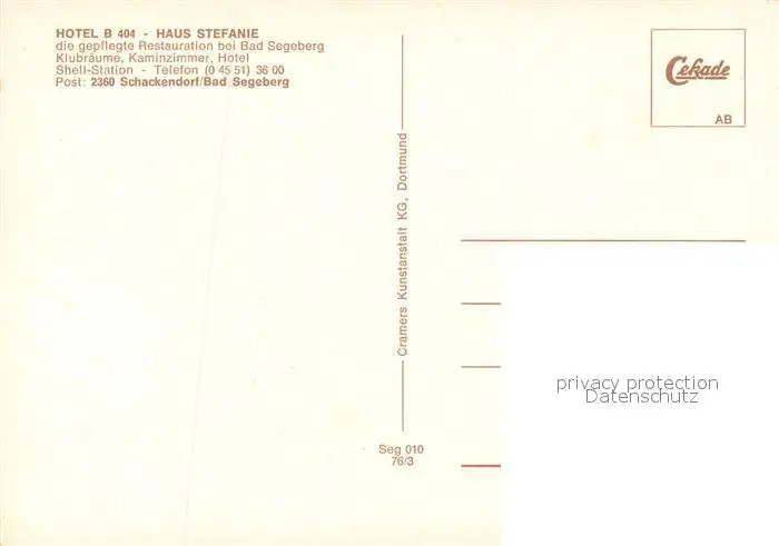 Schackendorf_Bad_Segeberg Motel B 404 Haus Stefani Schackendorf_Bad_Segeberg postalisch nicht gelaufen nach 1965 Erhaltung siehe scans [LiesaD40] LiesID40