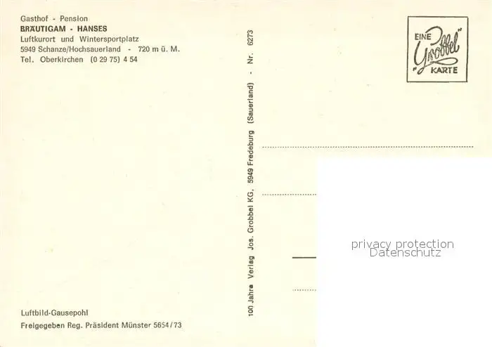 Schanze_Sauerland Gasthof Pension Braeutigam Hanses Luftkurort Fliegeraufnahme Schanze_Sauerland postalisch nicht gelaufen nach 1965 Erhaltung siehe scans [FriedD77] Frierer