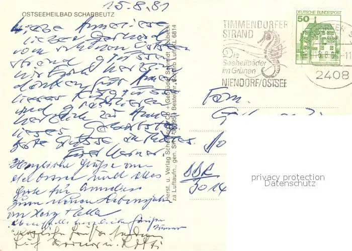Scharbeutz_Ostseebad Fliegeraufnahme Scharbeutz_Ostseebad postalisch gelaufen 1981 Erhaltung siehe scans [FriedD77] Frierer