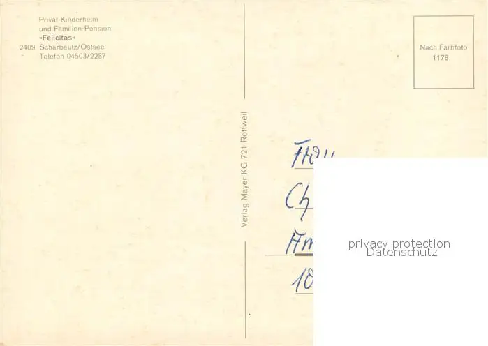 Scharbeutz_Ostseebad Kinderheim Pension Felicitas Scharbeutz_Ostseebad postalisch nicht gelaufen nach 1965 Erhaltung siehe scans [FriedD77] Frierer