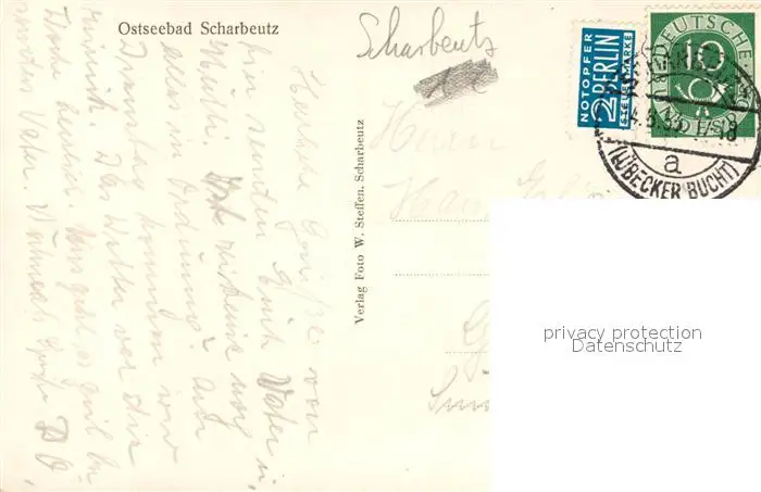 Scharbeutz_Ostseebad Strand Scharbeutz_Ostseebad postalisch gelaufen 1953 Erhaltung siehe scans [LiesaD40] LiesID40