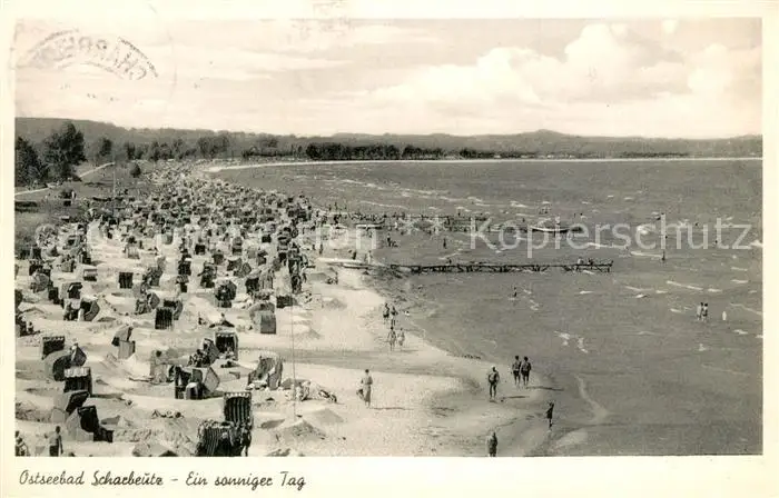 Scharbeutz_Ostseebad Strandleben Sandburgen Scharbeutz_Ostseebad postalisch gelaufen 1956 Erhaltung siehe scans [KathaD81] Kathoren