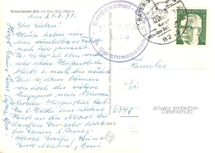 Scharitzkehlalm am Hohen Goell Scharitzkehlalm postalisch gelaufen 1971 Erhaltung siehe scans [FriedD77] Frierer