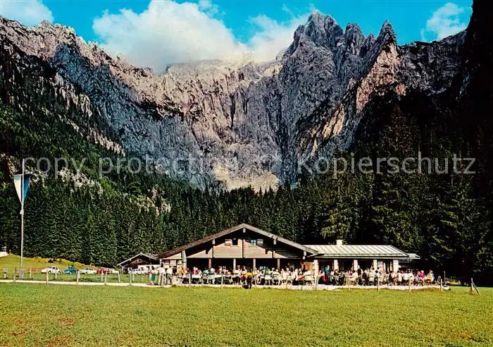 AK / Ansichtskarte Scharitzkehlalm_1024m_Berchtesgaden Berggasthof Cafe Scharitzkehlalm Aussenansicht m. Hohen Goell u. Kehlstein