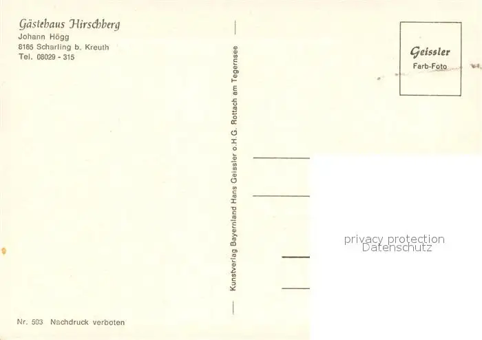 Scharling_Kreuth Gaestehaus Hirschberg Scharling Kreuth postalisch nicht gelaufen nach 1965 Erhaltung siehe scans [FriedD77] Frierer