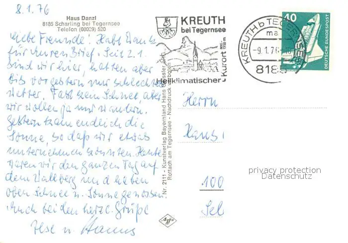 Scharling_Kreuth Haus Danzl Scharling Kreuth postalisch gelaufen 1976 Erhaltung siehe scans [WerneD78] WernPID7