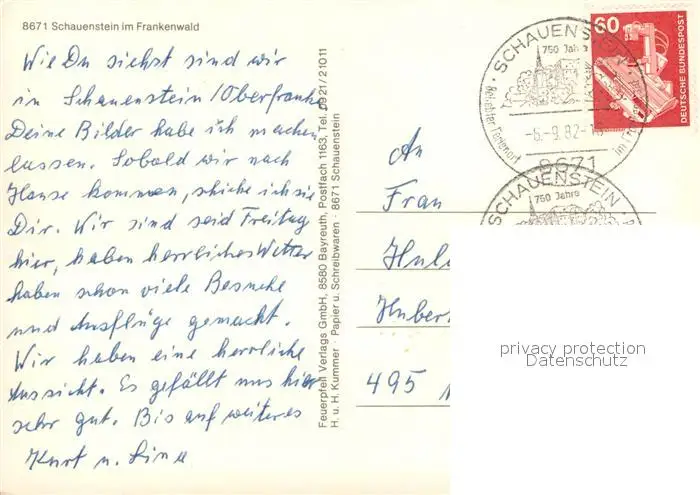 Schauenstein Kirche Schloss Panorama Schauenstein postalisch gelaufen 1982 Erhaltung siehe scans [WerneD78] WernPID7