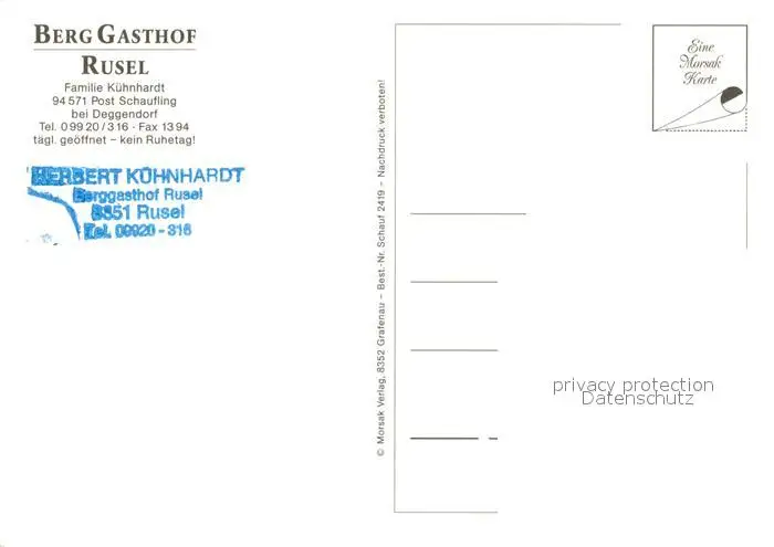 Schaufling Berggasthof Rusel Wintersportplatz Gaestezimmer Panoramablick Schaufling postalisch nicht gelaufen nach 1965 Erhaltung siehe scans [FriedD77] Frierer