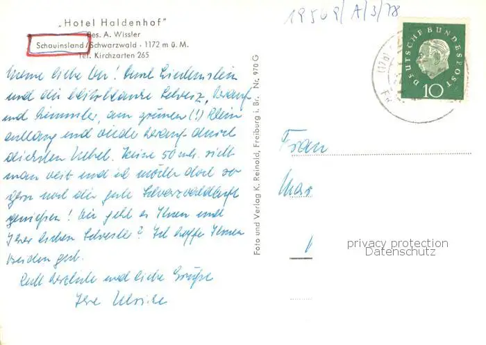 Schauinsland Hotel Haldenhof Schauinsland postalisch gelaufen 1921-1965 Erhaltung siehe scans [FriedD77] Frierer