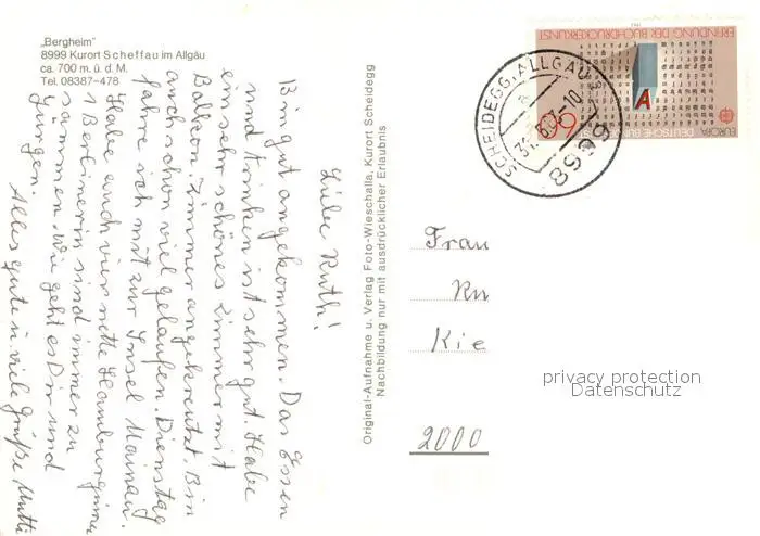 Scheffau_Scheidegg Bergheim Blumenwiesen Allgaeuer Alpen Scheffau Scheidegg postalisch gelaufen 1983 Erhaltung siehe scans [FriedD77] Frierer