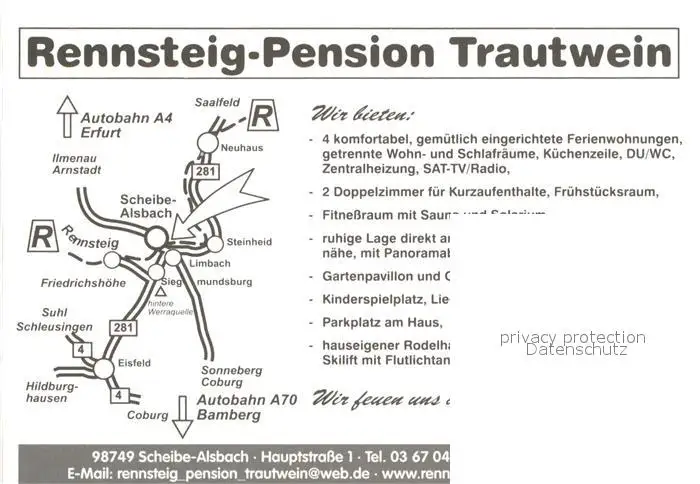 Scheibe-Alsbach Rennsteig Pension Trautwein Spielplatz Solarium Scheibe-Alsbach postalisch nicht gelaufen nach 1965 Werbekarte (keine Postkarte) Erhaltung siehe scans [LiesaD40] Werbekarte (keine Postkarte) LiesID40
