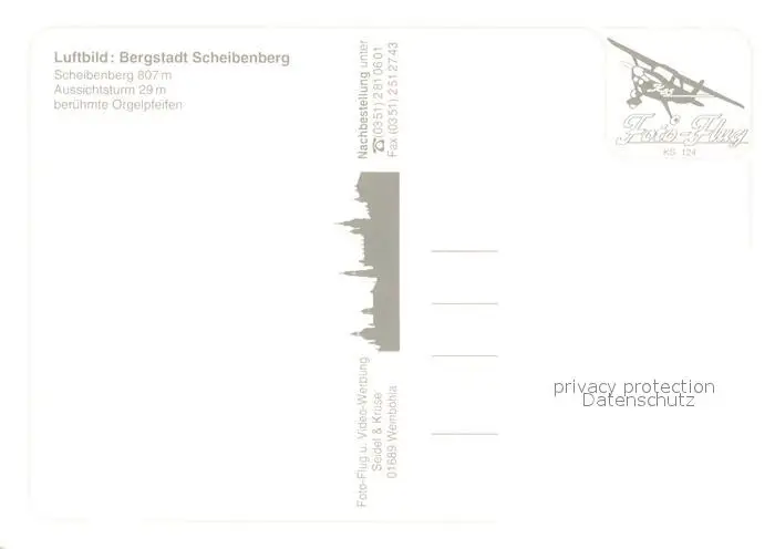 Scheibenberg Bergstadt Aussichtsturm Scheibenberg postalisch nicht gelaufen nach 1965 Fliegeraufnahme Erhaltung siehe scans [FriedD77] Fliegeraufnahme Frierer