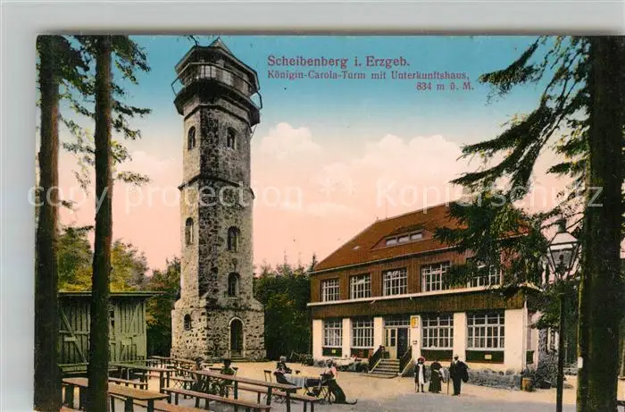 AK / Ansichtskarte Scheibenberg Koenigin Carola Turm Unterkunftshaus Scheibenberg
