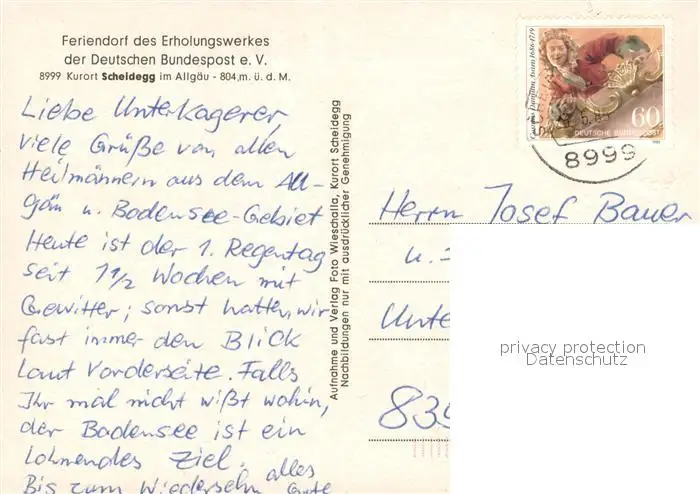 Scheidegg_Allgaeu Feriendorf des Erholungswerkes der Deutschen Bundespost Scheidegg Allgaeu postalisch gelaufen 1985 Erhaltung siehe scans [WerneD78] WernPID7