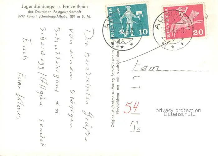 Scheidegg_Allgaeu Jugendbildungs und Freizeitheim der Dt Postgewerkschaft Scheidegg Allgaeu postalisch gelaufen 1966 Erhaltung siehe scans [FriedD77] Frierer