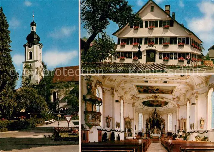 AK / Ansichtskarte Scheidegg_Allgaeu Pfarrkirche St. Gallus und Rathaus Scheidegg Allgaeu
