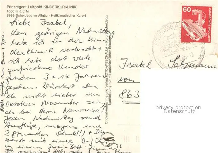 Scheidegg_Allgaeu Prinzregent Luitpold Kinderkurklinik Details Scheidegg Allgaeu postalisch gelaufen 1986 Erhaltung siehe scans [WerneD78] WernPID7