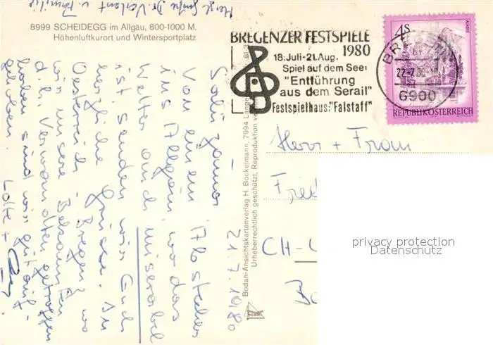 Scheidegg_Allgaeu Wassertreten Panorama Fahnenplatz Strassenpartie Scheidegg Allgaeu postalisch gelaufen 1980 Erhaltung siehe scans [WerneD78] WernPID7