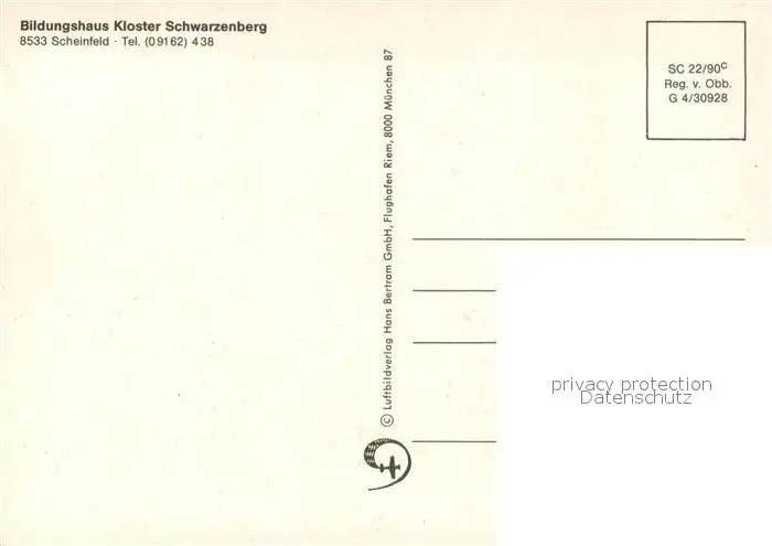 Scheinfeld Kloster Schwarzenburg Fliegeraufnahme Scheinfeld postalisch nicht gelaufen nach 1965 Erhaltung siehe scans [WerneD78] WernPID7
