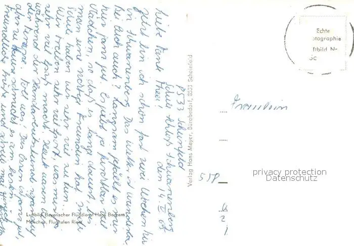 Scheinfeld Schloss Schwarzenberg im Steigerwald Fliegeraufnahme Scheinfeld postalisch gelaufen 1965 Erhaltung siehe scans [FriedD77] Frierer