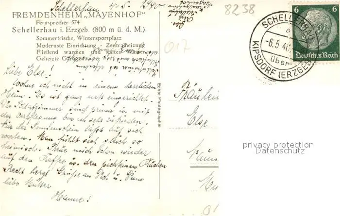 Schellerhau Fremdenheim Mayenhof Terrasse Schellerhau postalisch gelaufen 1940 Erhaltung siehe scans [FriedD77] Frierer
