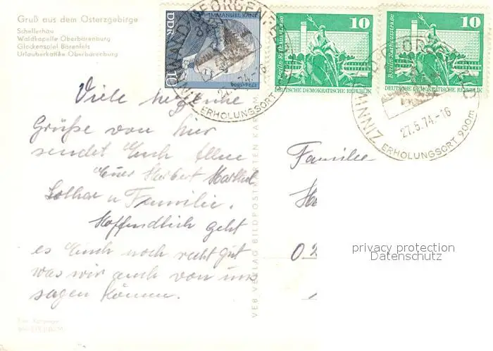 Schellerhau Waldkapelle Oberbaerenburg Glockenspiel Baerenfels Schellerhau postalisch gelaufen 1974 Erhaltung siehe scans [NatalD47] NataID47