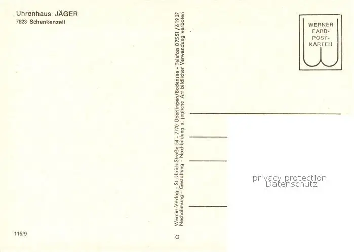 Schenkenzell Uhrenhaus Jaeger Verkaufsraeume Schenkenzell postalisch nicht gelaufen nach 1965 Erhaltung siehe scans [WerneD78] WernPID7