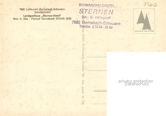 Scheuern_Gernsbach Landgasthof Sternen Hotel Lutkurort Scheuern Gernsbach postalisch nicht gelaufen nach 1965 Erhaltung siehe scans [FriedD77] Frierer