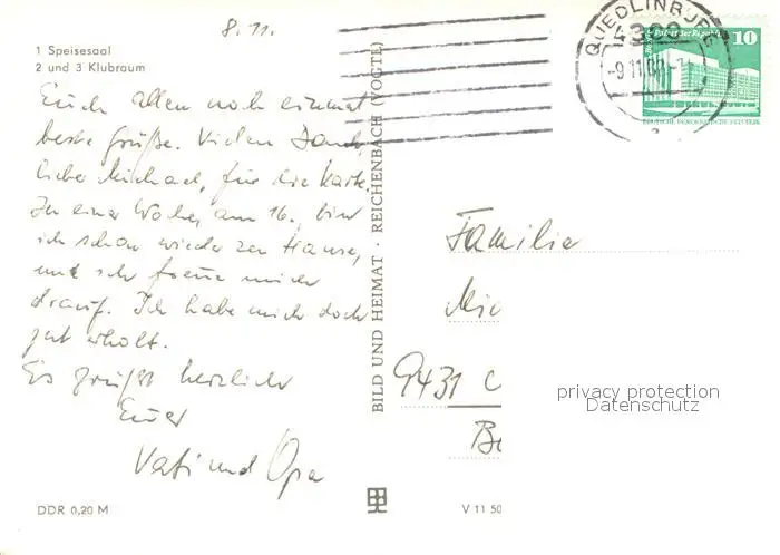 Schielo_Harz Kliniksanatorium Innen und Aussen m. Speisesaal u. Klubraum Schielo Harz postalisch gelaufen 1982 Erhaltung siehe scans [LiesaD40] LiesID40