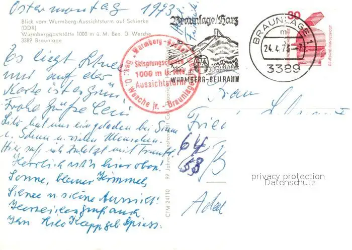 Schierke_Harz Panorama vom Wurmberg Aussichtsturm Schierke Harz postalisch gelaufen 1973 Erhaltung siehe scans [KathaD81] Kathoren