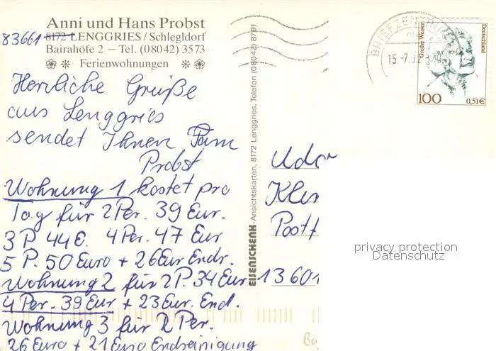 Schlegldorf Ferienwohnungen Fam Probst Gaststube Zimmer Panorama Schlegldorf postalisch gelaufen 1992 Erhaltung siehe scans [WerneD78] WernPID7