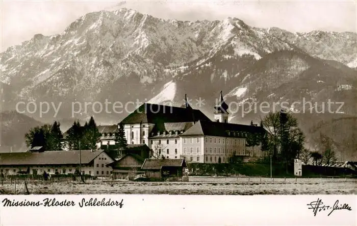 AK / Ansichtskarte Schlehdorf Missions Kloster Schlehdorf mit Herzogstand und Sattel Schlehdorf