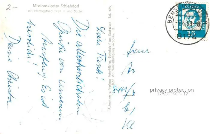 Schlehdorf Missions Kloster Schlehdorf mit Herzogstand und Sattel Schlehdorf postalisch gelaufen 1963 Erhaltung siehe scans [WerneD78] WernPID7