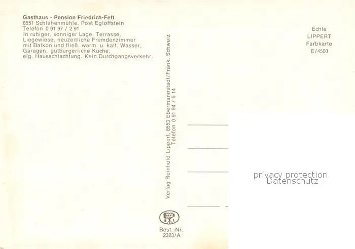 Schlehenmuehle_Egloffstein Gasthof Pension Friedrich Fett Terrasse postalisch nicht gelaufen nach 1965 Erhaltung siehe scans [FriedD77] Frierer